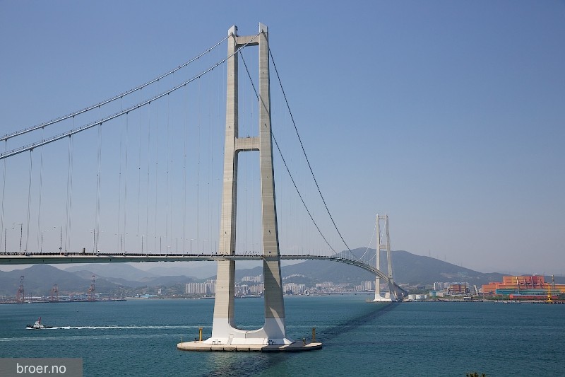 Jembatan gantung yang berada di sepanjang Semenanjung Pantai Selatan Korea ini memiliki panjang 1.545 meter dan tinggi 270 meter.
